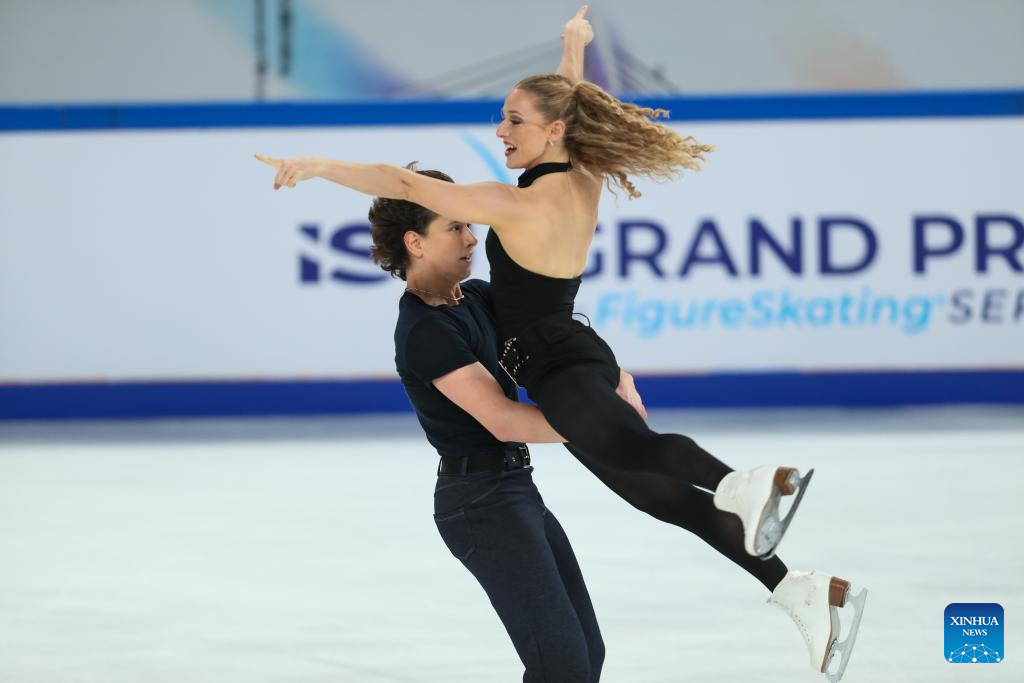 Evgeniia Lopareva (L)/Geoffrey Brissaud of France perform during the ice dance rhythm dance at the Cup of China ISU Grand Prix of Figure Skating 2025 in southwest China's Chongqing Municipality, Oct. 24, 2025. (Xinhua/Huang Wei)