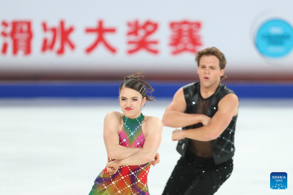 Caroline Green (R)/Michael Parsons of the United States perform during the ice dance rhythm dance at the Cup of China ISU Grand Prix of Figure Skating 2025 in southwest China's Chongqing Municipality, Oct. 24, 2025. (Xinhua/Huang Wei)