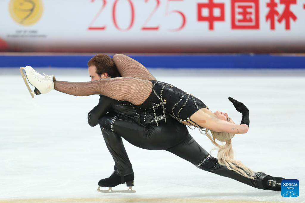 Emilea Zingas (R)/Vadym Kolesnik of the United States perform during the ice dance rhythm dance at the Cup of China ISU Grand Prix of Figure Skating 2025 in southwest China's Chongqing Municipality, Oct. 24, 2025. (Xinhua/Huang Wei)