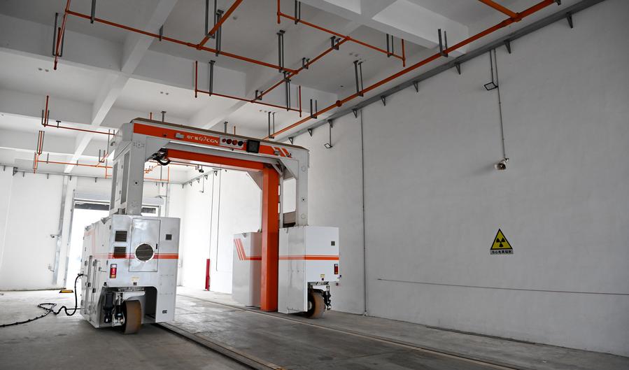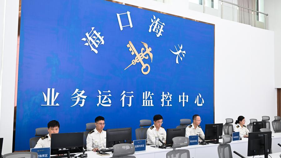 A drone photo taken on Sept. 23, 2025 shows the customs inspection area at the centralized inspection yard of a freight port in Haikou, south China's Hainan Province. (Xinhua/Yang Guanyu)This photo taken on Oct. 23, 2025 shows equipment inside the centralized inspection yard of a freight port in Haikou, south China's Hainan Province. (Xinhua/Yang Guanyu)A staff member works at a technology center laboratory of the Haikou Customs in Haikou, south China's Hainan Province, on Oct. 22, 2025. (Xinhua/Yang Guanyu)