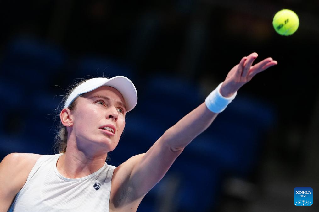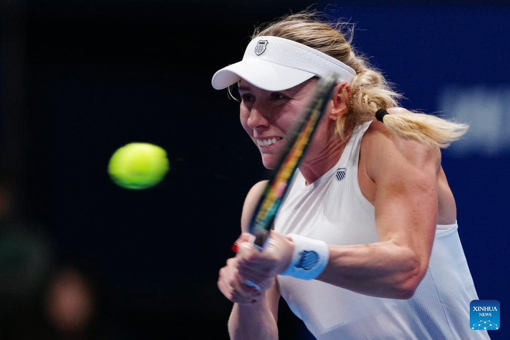 Sofia Kenin hits a return during the women's singles quarterfinal match between Sofia Kenin of the United States and Ekaterina Alexandrova of Russia at the Pan Pacific Open tennis tournament in Tokyo, Japan, on Oct. 24, 2025. (Xinhua/Jia Haocheng)