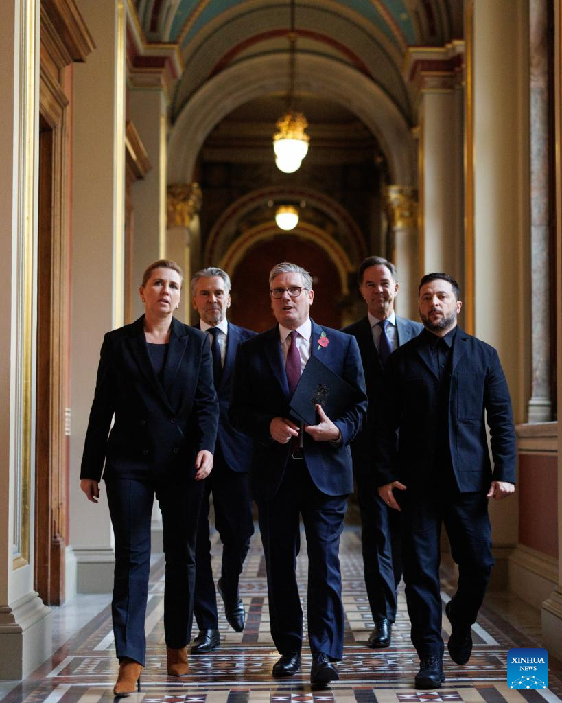 LONDON, Oct. 24 (Xinhua) -- European leaders and NATO's chief vowed Friday to step up sanctions on Russia and accelerate the delivery of long-range strike and air defense weapons to Ukraine following a "Coalition of the Willing" meeting in London.
