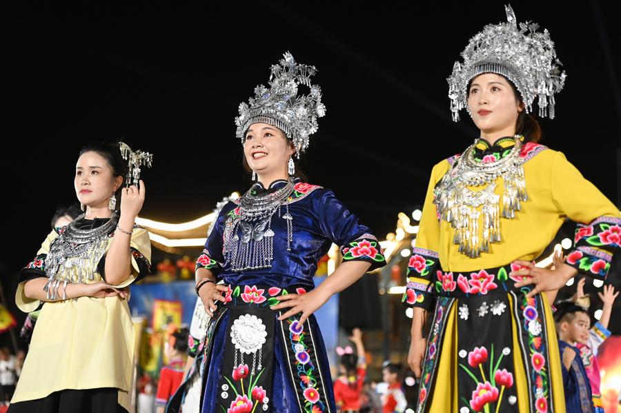 GUIYANG, Oct. 25 (Xinhua) -- Amid rhythmic work songs, a group of craftsmen passionately demonstrated the traditional art of Chinese wooden house construction, their energy electrifying an otherwise ordinary Saturday night in a mountainous county in southwest China.