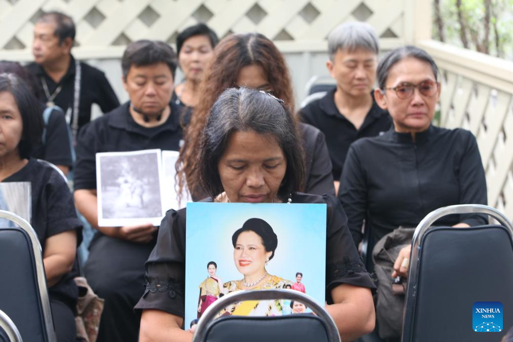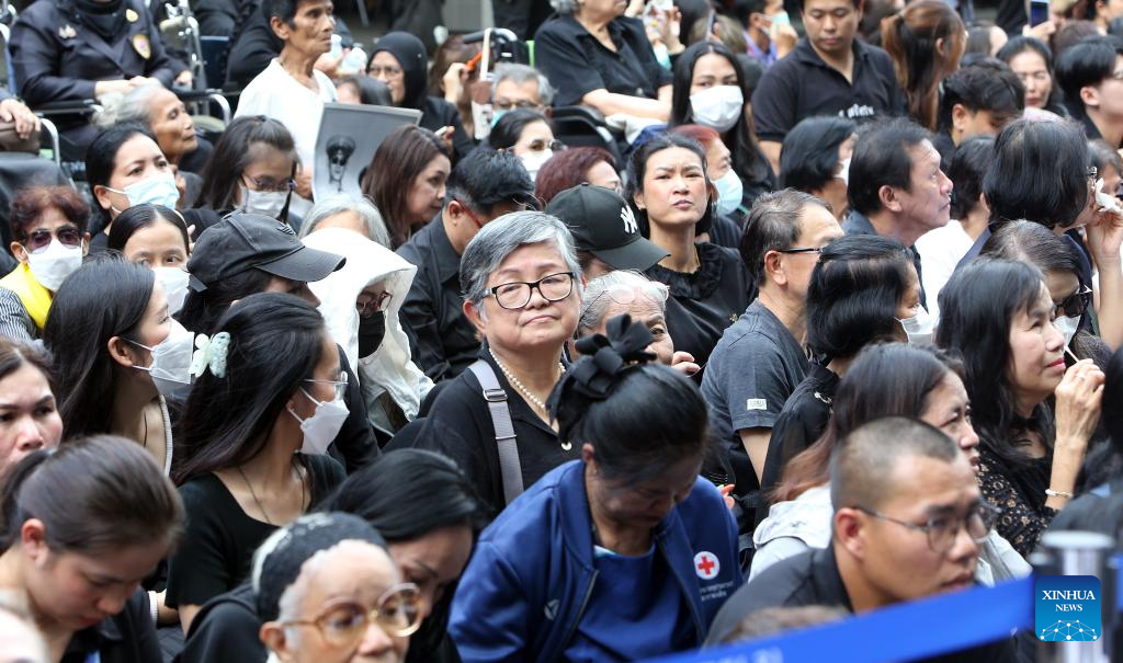 People mourn for Thailand's Queen Mother Sirikit at King Chulalongkorn Memorial Hospital in Bangkok, Thailand, Oct. 26, 2025. Thailand's Queen Mother Sirikit passed away on Friday at the age of 93, the Bureau of the Royal Household announced. (Xinhua/Rachen Sageamsak)