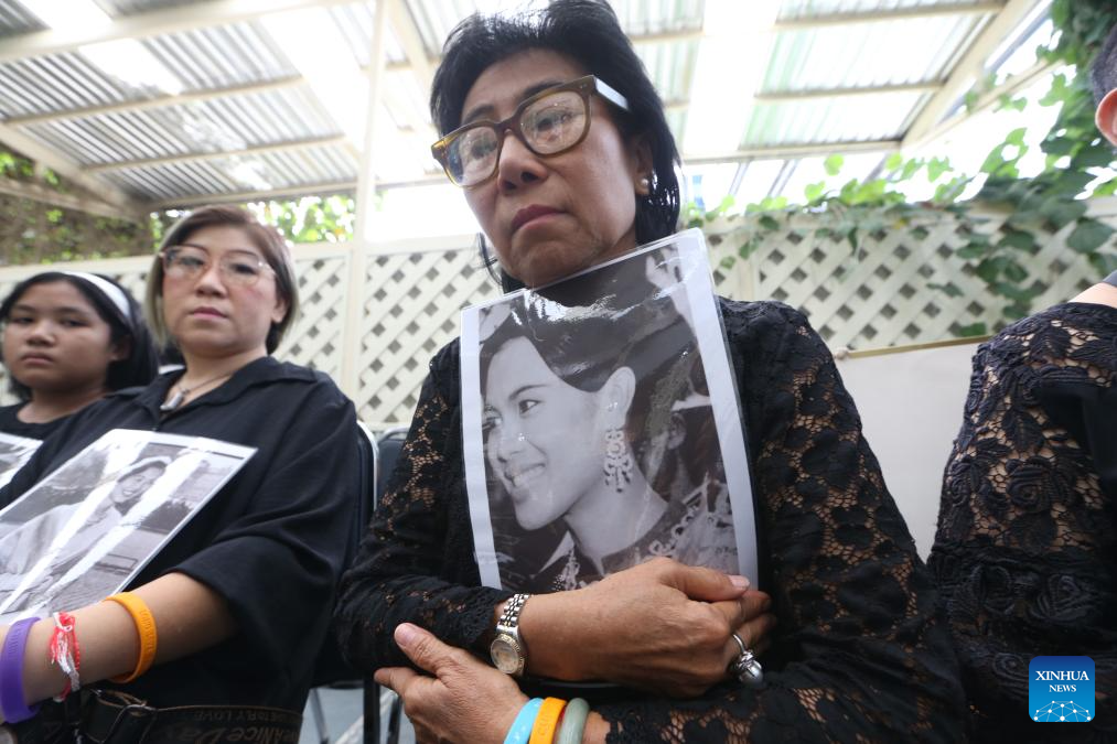 A woman mourns for Thailand's Queen Mother Sirikit at King Chulalongkorn Memorial Hospital in Bangkok, Thailand, Oct. 25, 2025. Thailand's Queen Mother Sirikit passed away on Friday at the age of 93, the Bureau of the Royal Household announced. (Xinhua/Rachen Sageamsak)