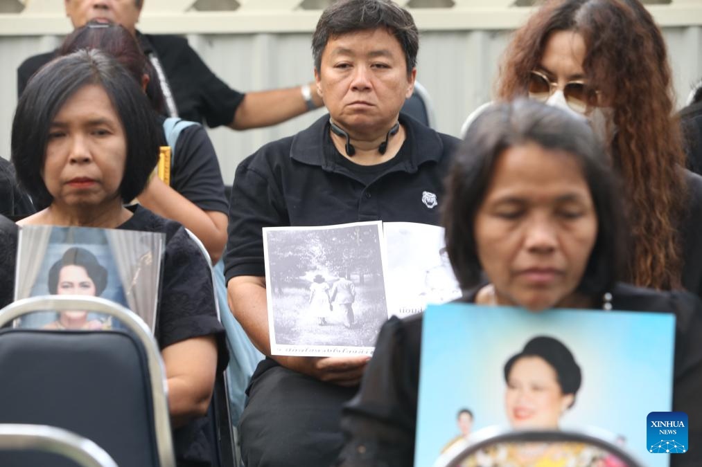 People mourn for Thailand's Queen Mother Sirikit at King Chulalongkorn Memorial Hospital in Bangkok, Thailand, Oct. 25, 2025. Thailand's Queen Mother Sirikit passed away on Friday at the age of 93, the Bureau of the Royal Household announced. (Xinhua/Rachen Sageamsak)