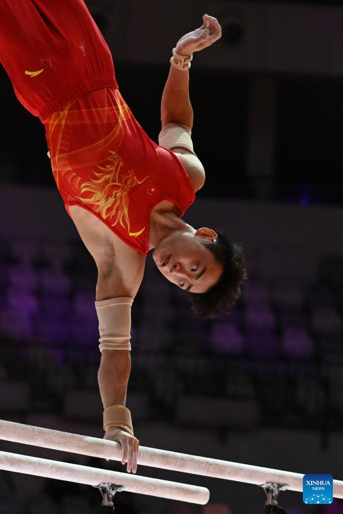 China's Shi Cong appeared in both the parallel bars and horizontal bar finals, placing eighth and seventh respectively. In the horizontal bar event, American Brody Malone took gold with 14.933, followed by Japan's Daiki Hashimoto (14.733) and Britain's Joe Fraser (14.700). ■