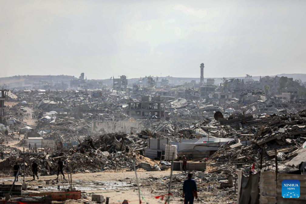 (251025) -- BEIJING, Oct. 25, 2025 (Xinhua) -- Destroyed buildings are seen in Jabalia, northern Gaza Strip, Oct. 24, 2025. (Photo by Rizek Abdeljawad/Xinhua)