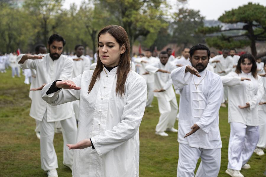 WUHAN, Oct. 26 (Xinhua) -- In the cool, misty morning air around the Wudang Mountains in Hubei province, China, a tall German man dressed in black robes slowly shifts his weight from one leg to the other at the Wudang International Martial Arts Exchange Center, his arms moving in smooth circles as if tracing the air.