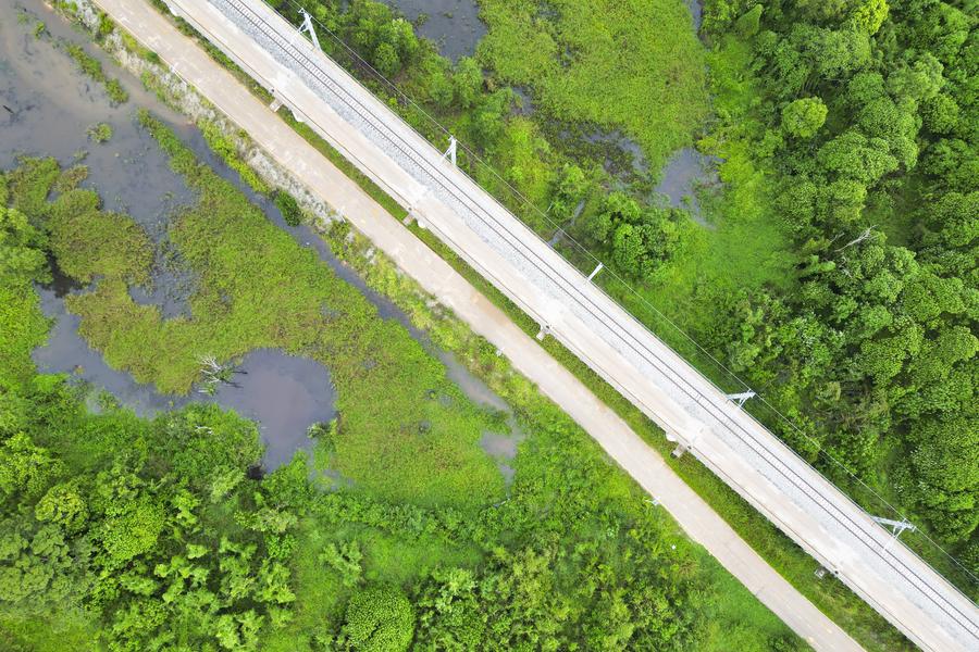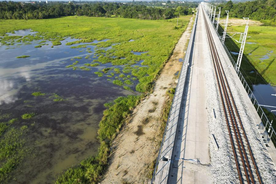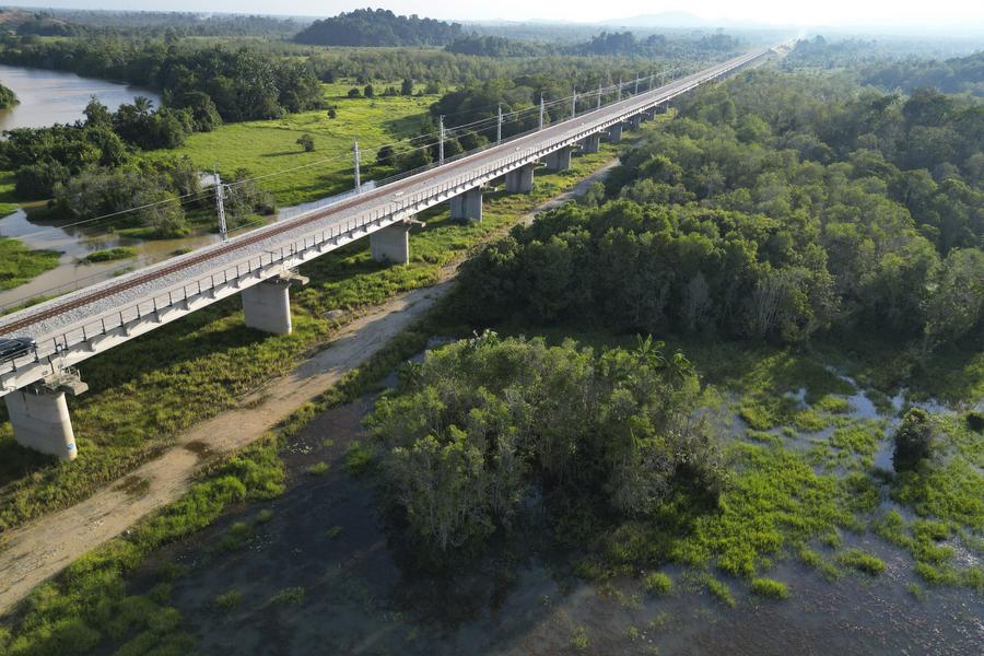 A drone photo taken on Oct. 10, 2025 shows birds flying near a grand bridge of the East Coast Rail Link (ECRL) project in Pahang state, Malaysia.A drone photo taken on Oct. 10, 2025 shows a view outside the entrance of a tunnel of the East Coast Rail Link (ECRL) project in Pahang state, Malaysia.An aerial drone photo taken on Oct. 9, 2025 shows a view of a wetland crossed by the railway of the East Coast Rail Link (ECRL) project in Pahang state, Malaysia.Constructors of the East Coast Rail Link (ECRL) project work in the rain in Pahang state, Malaysia, Oct. 9, 2025.A bird flies near the East Coast Rail Link (ECRL) project in Pahang state, Malaysia, Oct. 10, 2025.Birds are pictured near the East Coast Rail Link (ECRL) project in Pahang state, Malaysia, Oct. 10, 2025.An aerial drone photo taken on Oct. 10, 2025 shows a view of the East Coast Rail Link (ECRL) project in Pahang state, Malaysia.A drone photo taken on Oct. 10, 2025 shows wild ducks swimming in the water near the East Coast Rail Link (ECRL) project in Pahang state, Malaysia.Plants are pictured near the East Coast Rail Link (ECRL) project in Pahang state, Malaysia, Oct. 10, 2025.