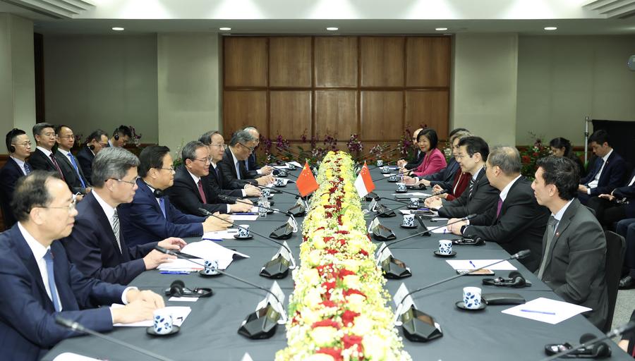 Chinese premier pledges joint efforts with Singapore for more just, equitable world order