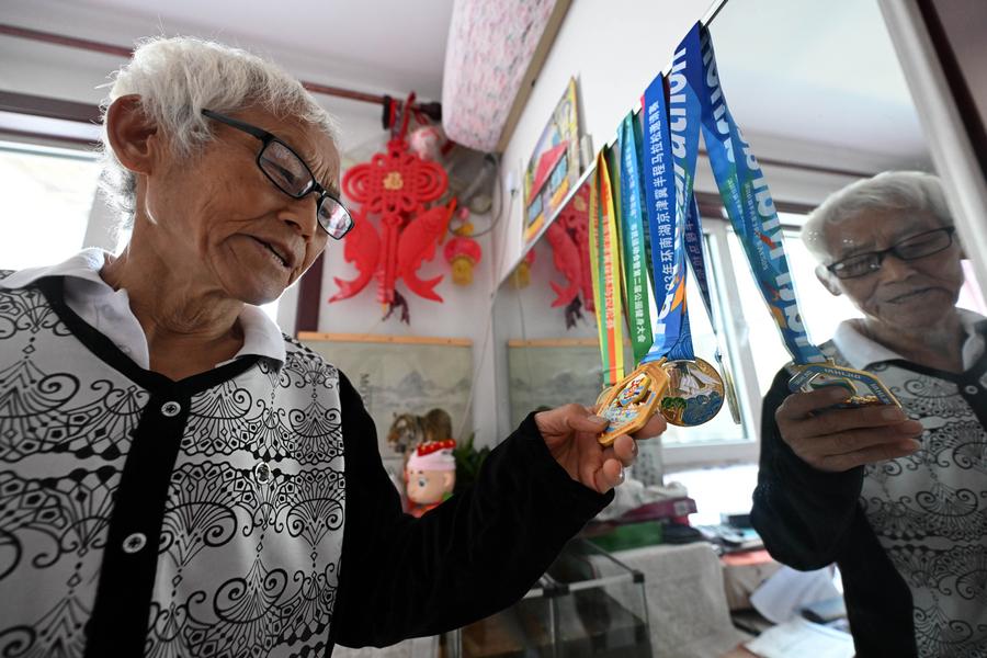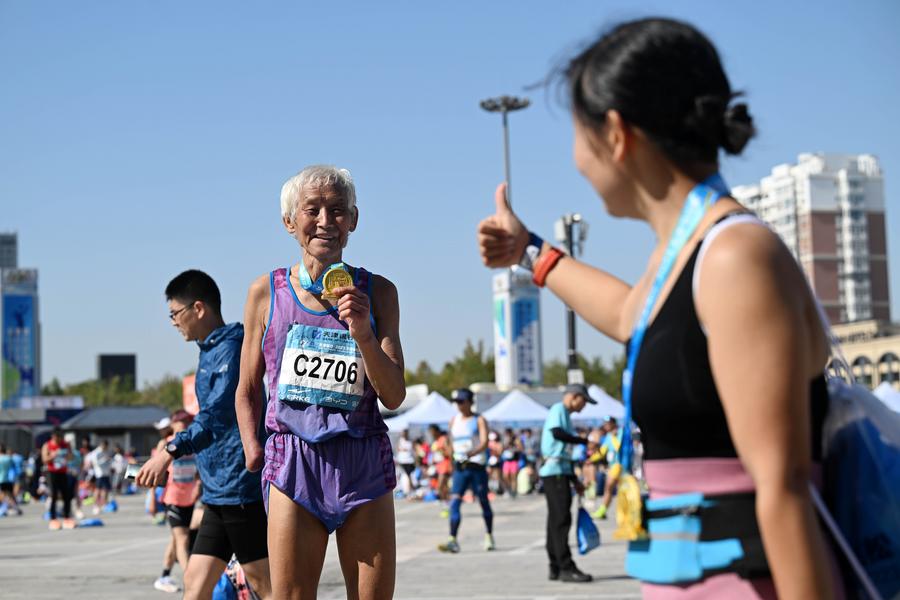 TIANJIN, Oct. 26 (Xinhua) -- At 5 a.m., as the streetlights along the Haihe River in north China's Tianjin still flickered, 74-year-old Liu Runlong had already laced up his running shoes and begun his warm-up routine.
