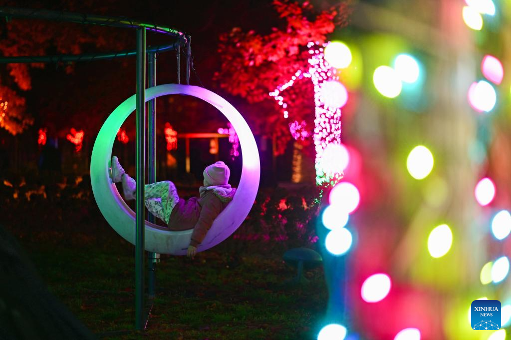 People visit the Garden of Lights show at the Botanical Garden of the Polish Academy of Sciences in suburban Warsaw, Poland, on Oct. 25, 2025. This year's exhibition, themed "Beauty and the Beast," has attracted many residents and tourists. (Photo by Aleksy Witwicki/Xinhua)