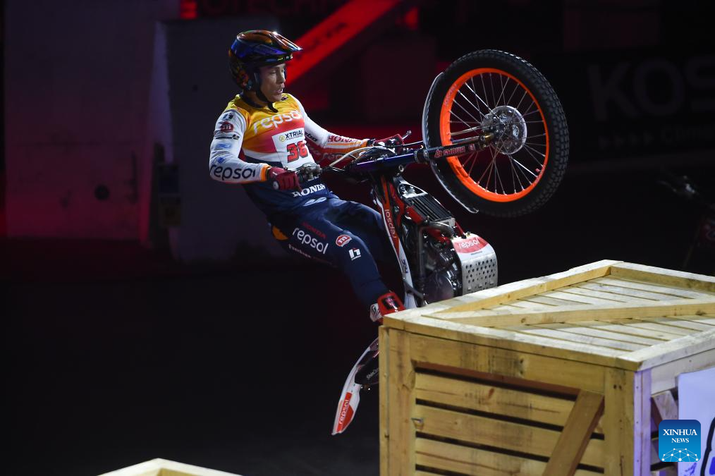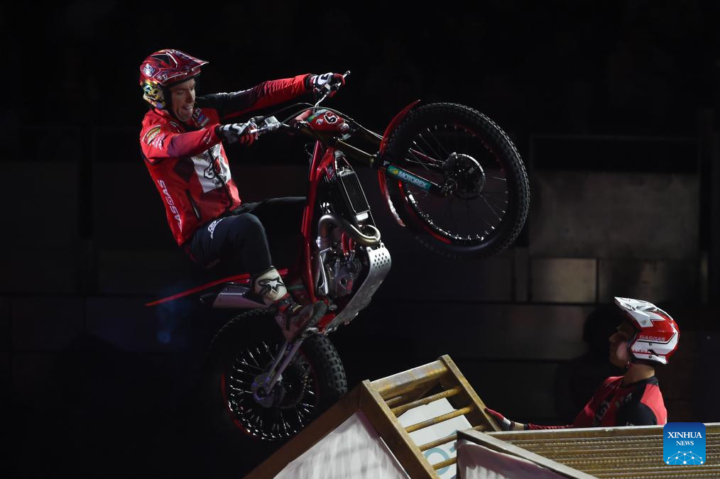 Gabriel Marcelli of Spain competes during the 2025-2026 FIM X-Trial World Championship, at Madrid Arena Stadium, Madrid, Spain, on Oct 25, 2025. (Photo by Gustavo Valiente/Xinhua)