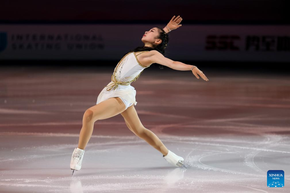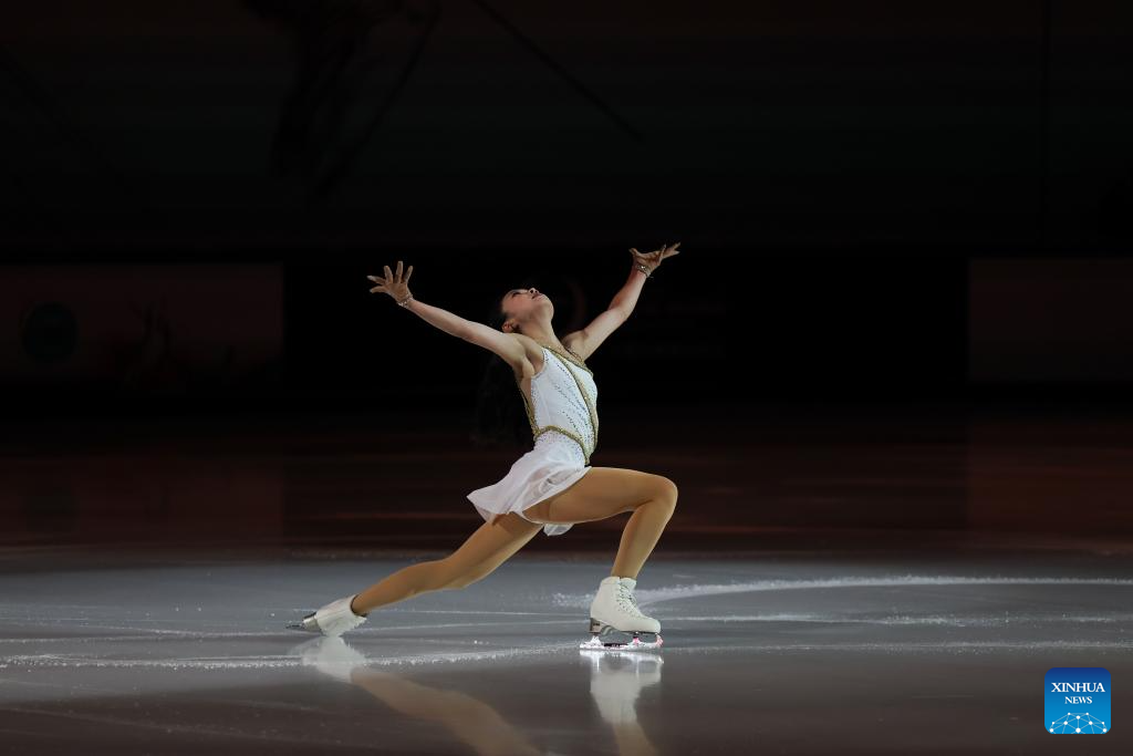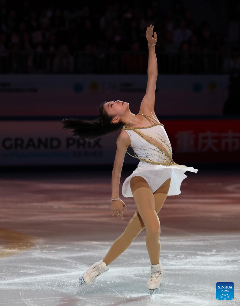 Alysa Liu of the United States performs during the exhibition gala at the Cup of China ISU Grand Prix of Figure Skating 2025 in southwest China's Chongqing Municipality, Oct. 26, 2025. (Xinhua/Huang Wei)