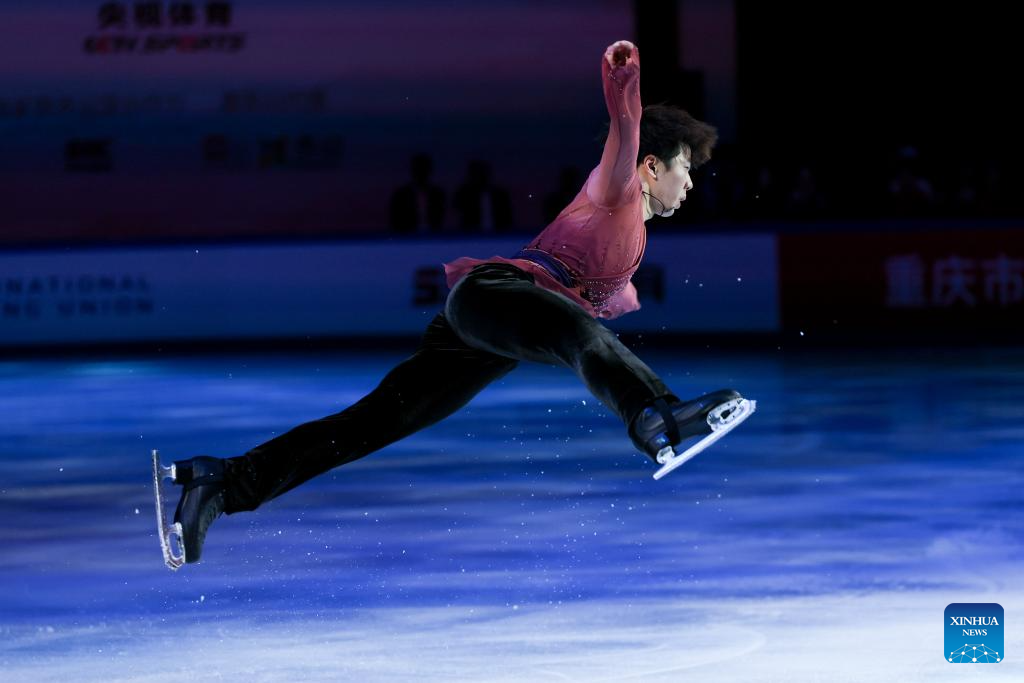 Jin Boyang of China performs during the exhibition gala at the Cup of China ISU Grand Prix of Figure Skating 2025 in southwest China's Chongqing Municipality, Oct. 26, 2025. (Xinhua/Huang Wei)