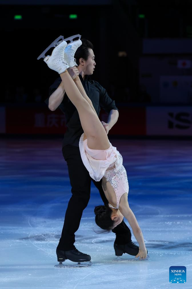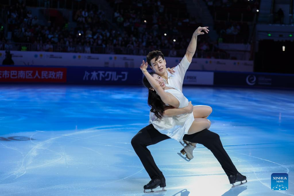 Wang Shiyue (front)/Liu Xinyu of China perform during the exhibition gala at the Cup of China ISU Grand Prix of Figure Skating 2025 in southwest China's Chongqing Municipality, Oct. 26, 2025. (Xinhua/Huang Wei)