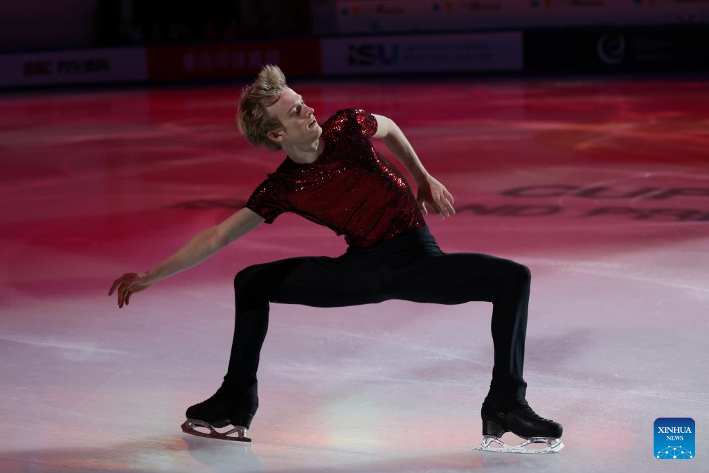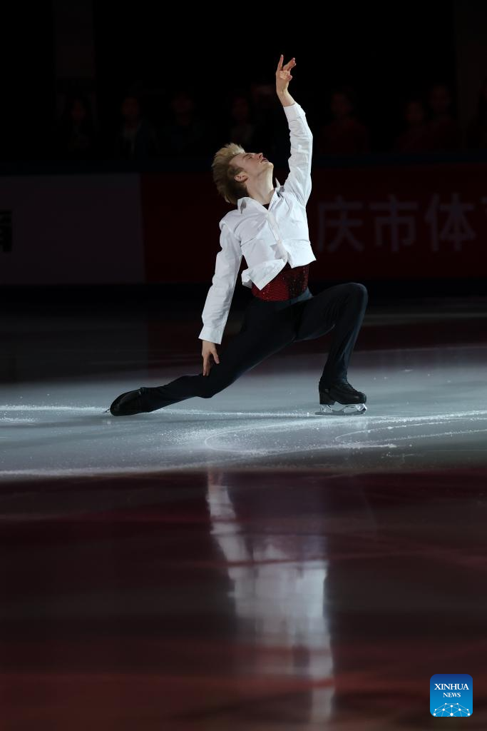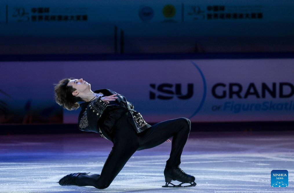 Mikhail Shaidorov of Kazakhstan performs during the exhibition gala at the Cup of China ISU Grand Prix of Figure Skating 2025 in southwest China's Chongqing Municipality, Oct. 26, 2025. (Xinhua/Huang Wei)