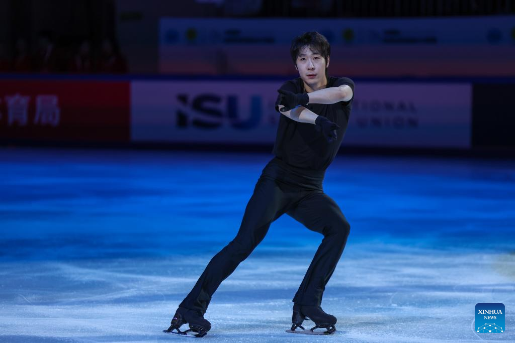 Cha Junhwan of South Korea performs during the exhibition gala at the Cup of China ISU Grand Prix of Figure Skating 2025 in southwest China's Chongqing Municipality, Oct. 26, 2025. (Xinhua/Huang Wei)