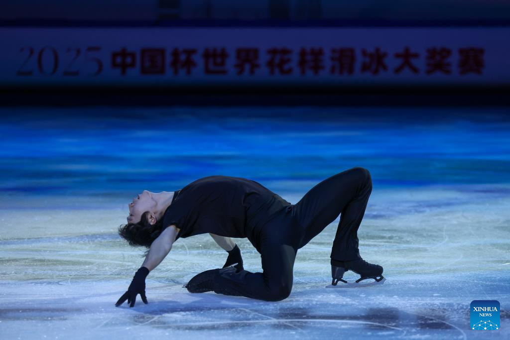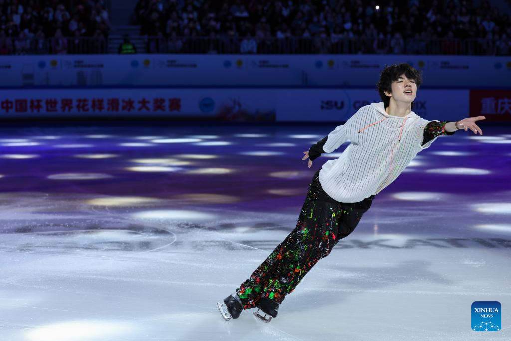 Sato Shun of Japan performs during the exhibition gala at the Cup of China ISU Grand Prix of Figure Skating 2025 in southwest China's Chongqing Municipality, Oct. 26, 2025. (Xinhua/Huang Wei)