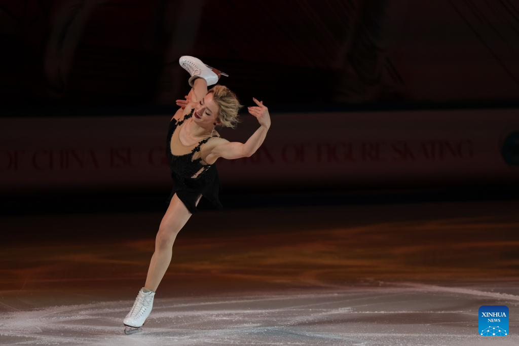 Amber Glenn of the United States performs during the exhibition gala at the Cup of China ISU Grand Prix of Figure Skating 2025 in southwest China's Chongqing Municipality, Oct. 26, 2025. (Xinhua/Huang Wei)