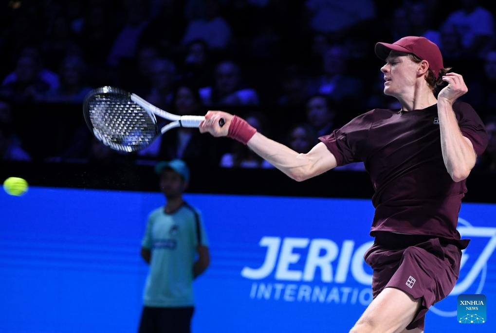 Jannik Sinner of Italy returns the ball during the men's single final match between Jannik Sinner of Italy and Alexander Zverev of Germany at ATP Tour Erste Bank Open in Vienna, Austria, Oct. 26, 2025. (Xinhua/He Canling)