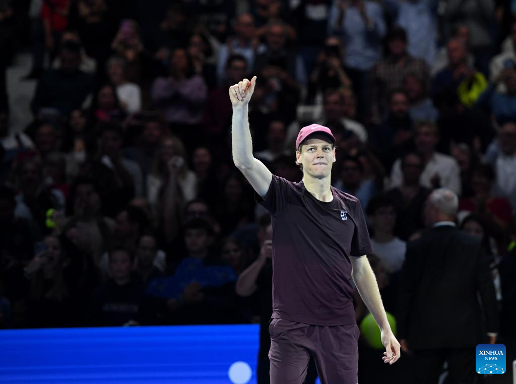 Jannik Sinner of Italy celebrates the victory after the men's single final match between Jannik Sinner of Italy and Alexander Zverev of Germany at ATP Tour Erste Bank Open in Vienna, Austria, Oct. 26, 2025. (Xinhua/He Canling)