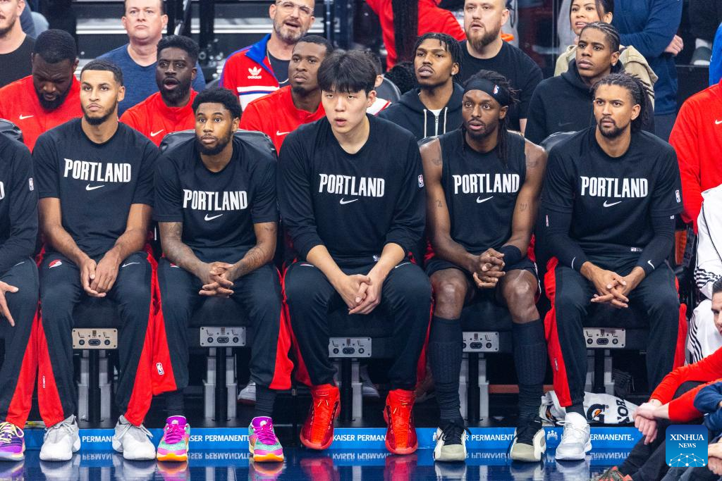 Portland Trail Blazers' players watch from the bench during the 2025-2026 NBA regular season match between Los Angeles Clippers and Portland Trail Blazers in Los Angeles, the United States, on Oct. 26, 2025. (Photo by Ringo Chiu/Xinhua)
