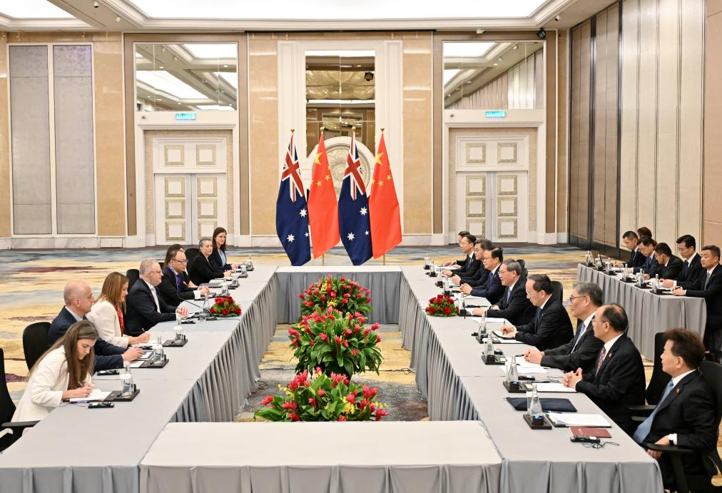 China is willing to strengthen the alignment of development strategies and policy coordination with Australia, Li said, expressing China's readiness to leverage the role of institutional dialogues, including the China-Australia Strategic Economic Dialogue and the joint economic commission, and to actively explore ways to advance the review and upgrading of the bilateral free trade agreement.
