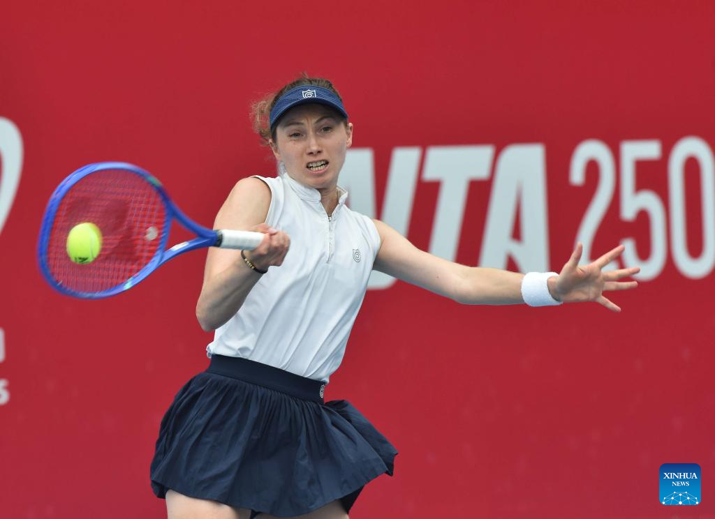 Ma Yexin hits a return during the women's singles round of 32 match between Ma Yexin of China and Cristina Bucsa of Spain at the WTA Hong Kong Open tennis tournament in Hong Kong, South China, Oct. 27, 2025. (Xinhua/Lo Ping Fai)