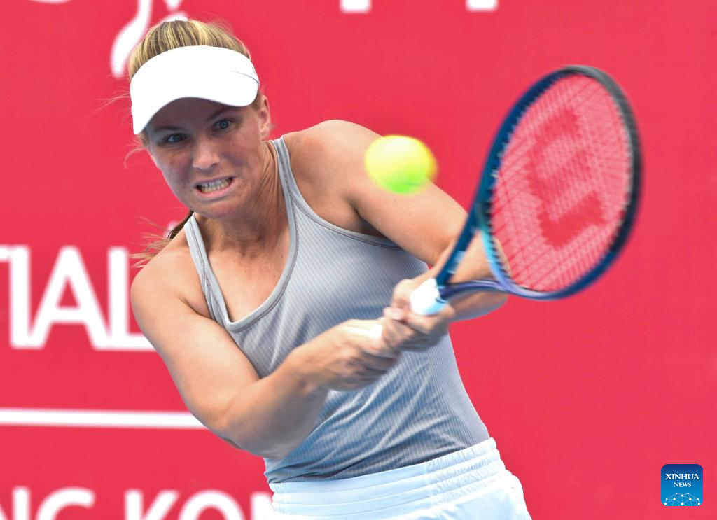 Maddison Inglis hits a return during the women's singles round of 32 match between Wang Yafan of China and Maddison Inglis of Australia at the WTA Hong Kong Open tennis tournament in Hong Kong, South China, Oct. 27, 2025. (Xinhua/Lo Ping Fai)