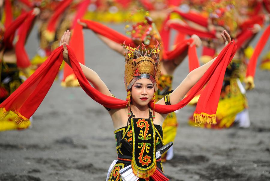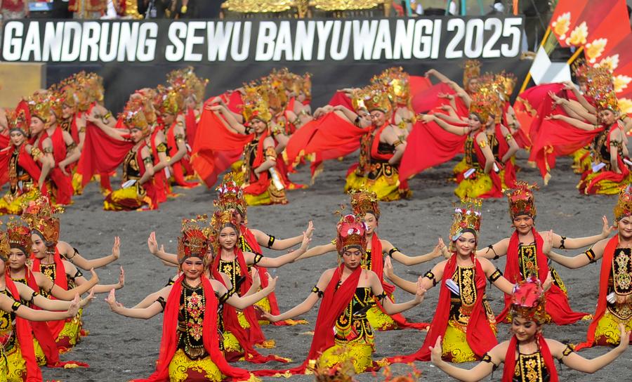 Dancers perform in a mass traditional Gandrung dance during the Gandrung Sewu Festival 2025 at Marina Boom Beach in Banyuwangi, East Java, Indonesia, on Oct. 25, 2025. (Photo by Sahlan Kurniawan/Xinhua)Dancers perform in a mass traditional Gandrung dance during the Gandrung Sewu Festival 2025 at Marina Boom Beach in Banyuwangi, East Java, Indonesia, on Oct. 25, 2025. (Photo by Sahlan Kurniawan/Xinhua)A dancer performs in a mass traditional Gandrung dance during the Gandrung Sewu Festival 2025 at Marina Boom Beach in Banyuwangi, East Java, Indonesia, on Oct. 25, 2025. (Photo by Sahlan Kurniawan/Xinhua)■