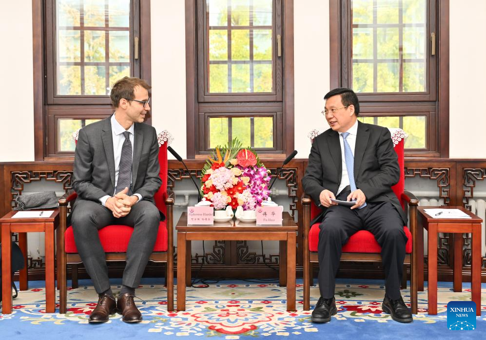President of Xinhua News Agency Fu Hua meets with Head of Agency at Reuters Alphonse Hardel in Beijing, capital of China, Oct. 28, 2025. (Xinhua/Yue Yuewei)