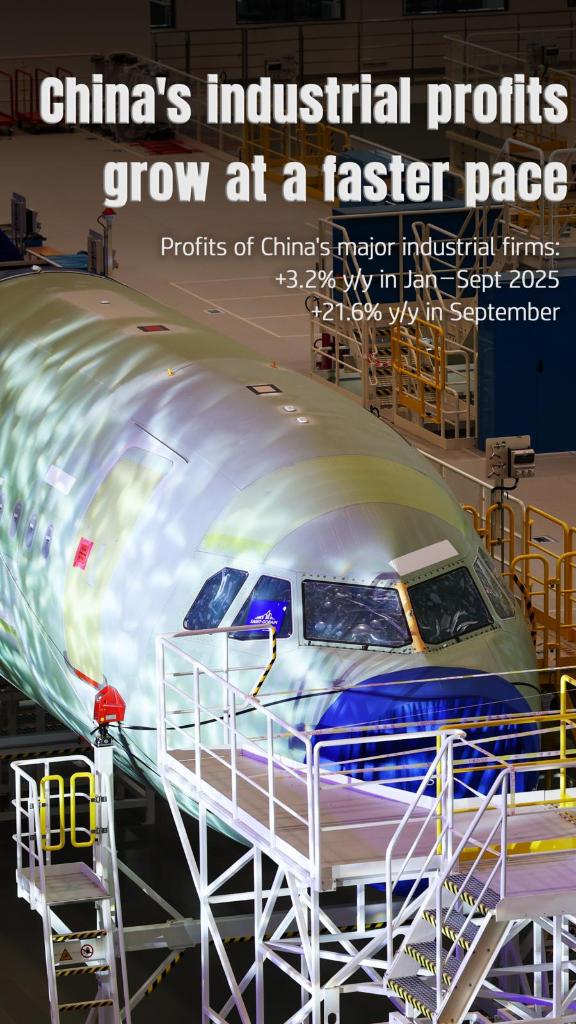 Profits of China's major industrial firms increased by 3.2 percent year-on-year in the first nine months of 2025, according to official data.