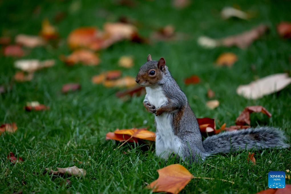A squirrel is seen in Regent's Park in London, Britain, Oct. 27, 2025. (Xinhua/Li Ying)