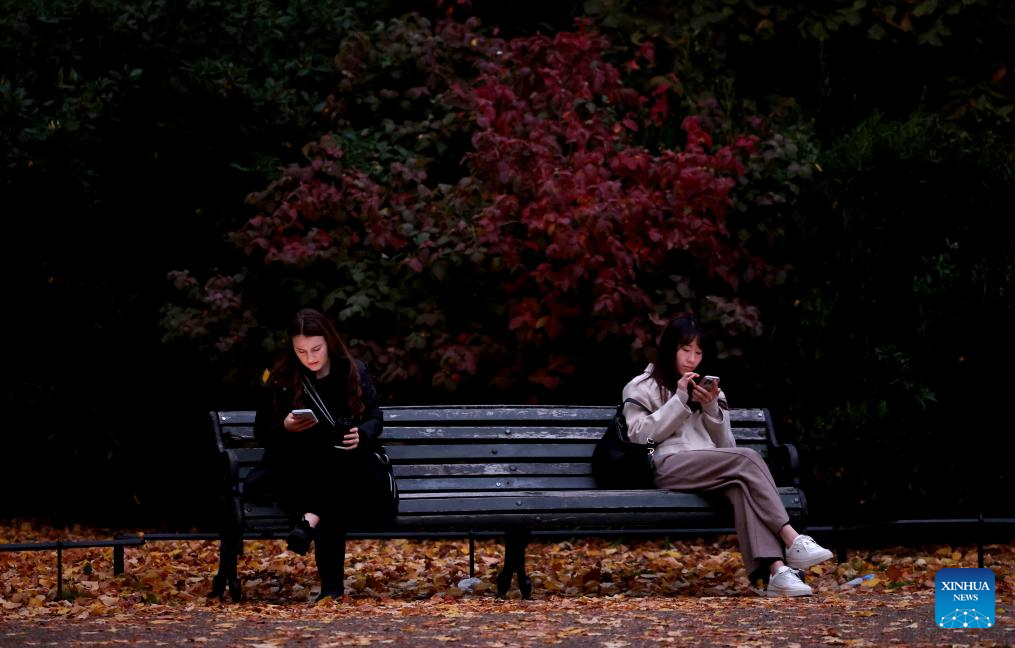 People rest at a bench in Regent's Park in London, Britain, Oct. 27, 2025. (Xinhua/Li Ying)