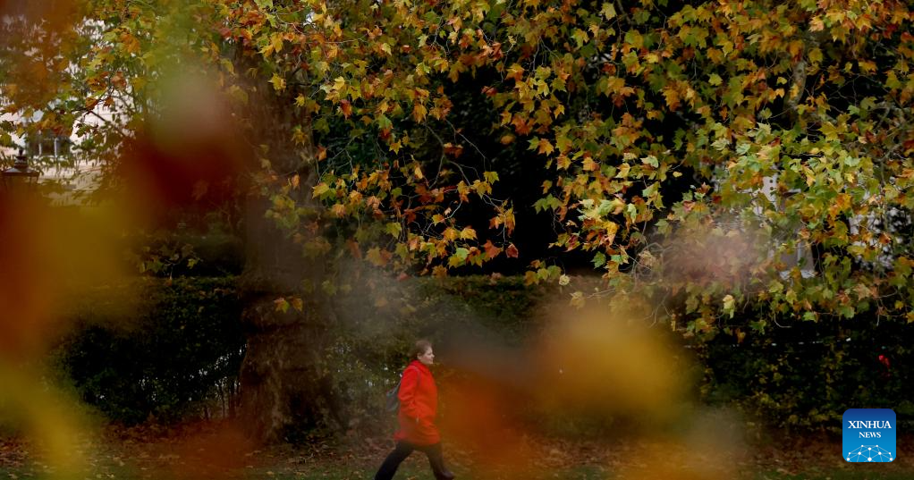 A woman walks in Regent's Park in London, Britain, Oct. 27, 2025. (Xinhua/Li Ying)