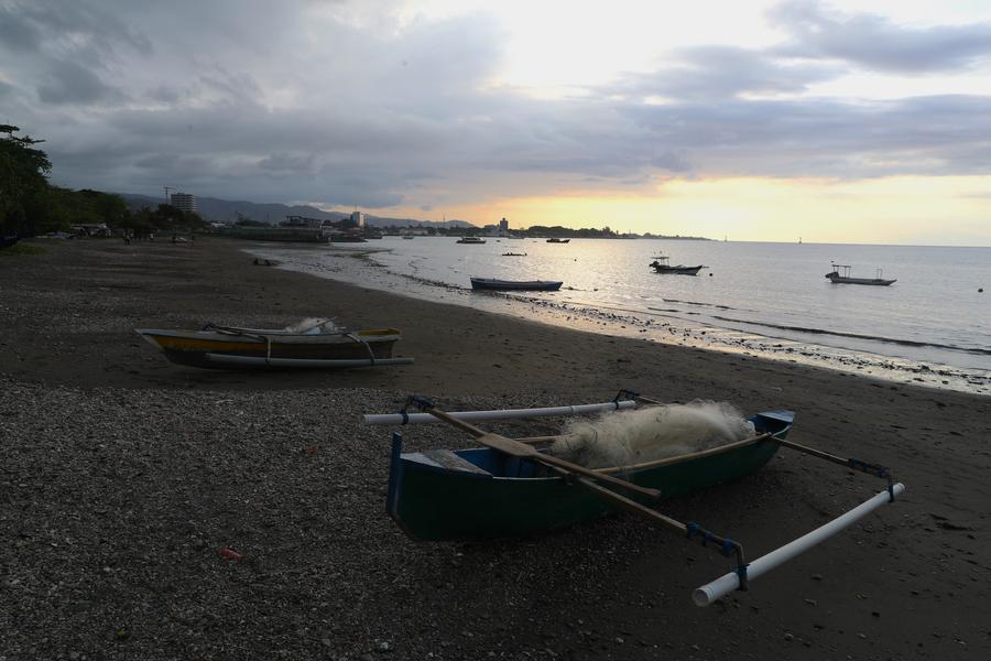 DILI, Oct. 28 (Xinhua) -- At dusk in Dili, Timor-Leste's capital, the western Tibar Bay glows orange-gold as cranes rise and fall over the harbor. At the Tibar Bay Port quay, containers are being loaded and unloaded, in the sunset, workers move briskly against the light.