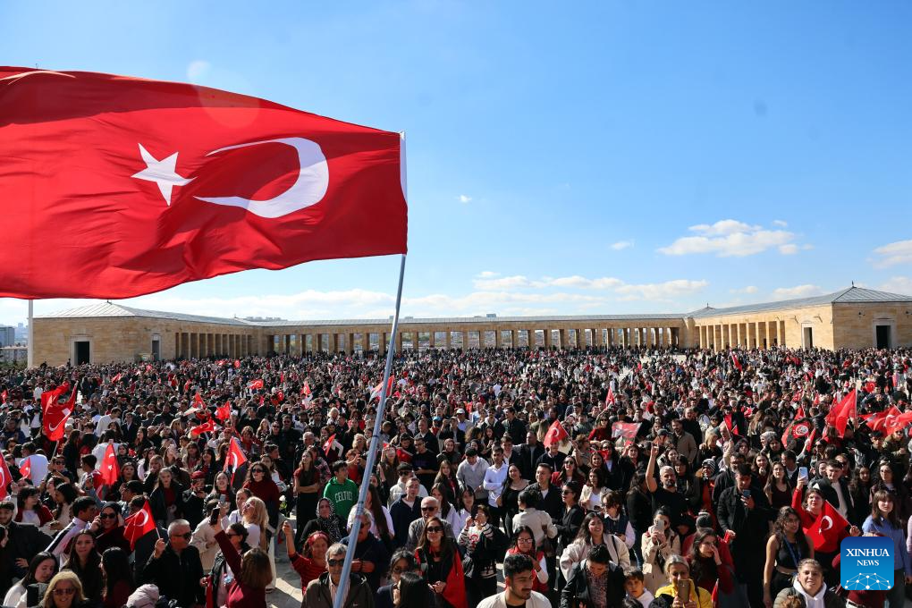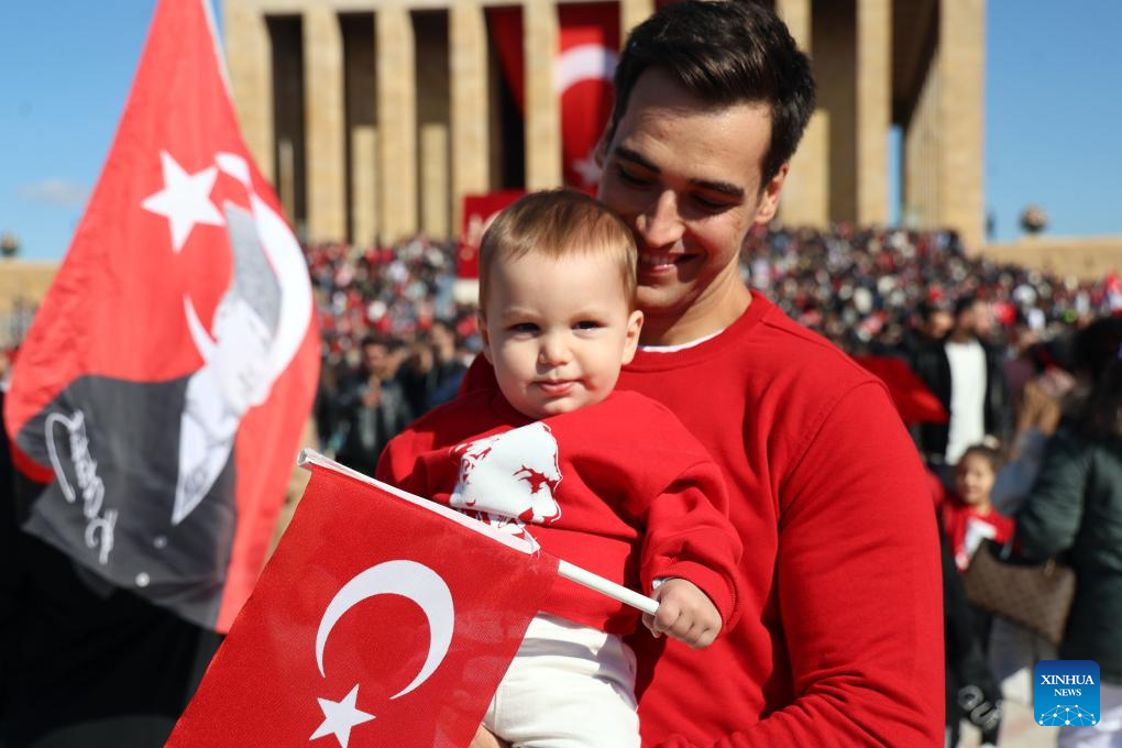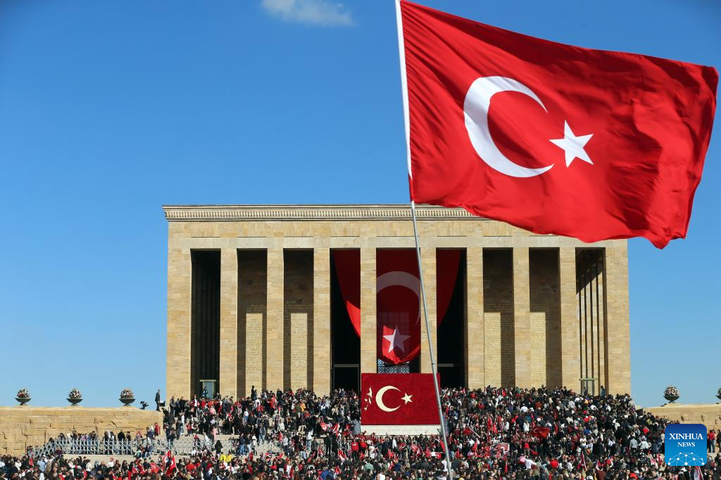 Turkish people gather at Anitkabir, the mausoleum of the founder of Turkish Republic Mustafa Kemal Ataturk, to celebrate the Republic Day in Ankara, Türkiye, Oct. 29, 2025. Türkiye celebrated its Republic Day to mark the 102nd anniversary of the founding of the Republic of Türkiye. (Mustafa Kaya/Handout via Xinhua)