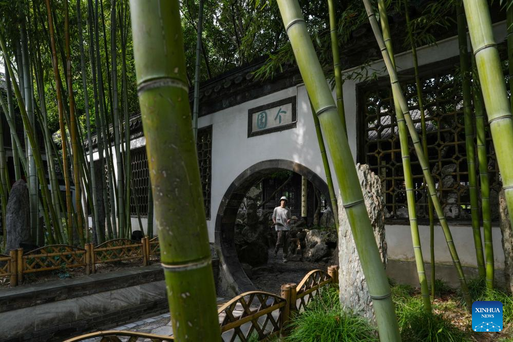 A tourist visits the Geyuan Garden in Yangzhou, east China's Jiangsu Province, Oct. 11, 2025.