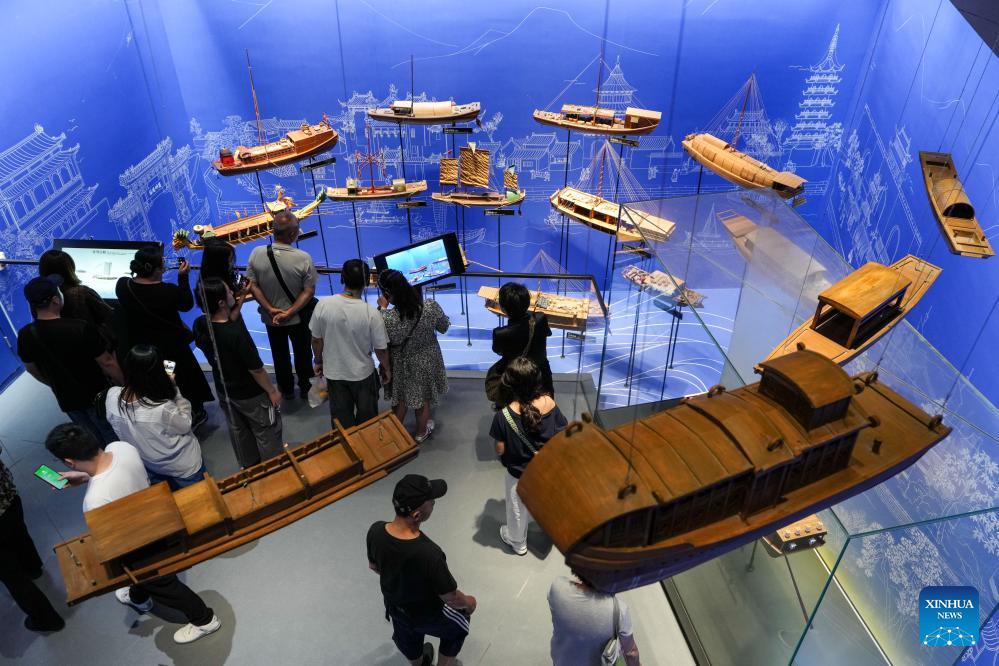 Tourists visit the China Grand Canal Museum in Yangzhou, east China's Jiangsu Province, Oct. 11, 2025.