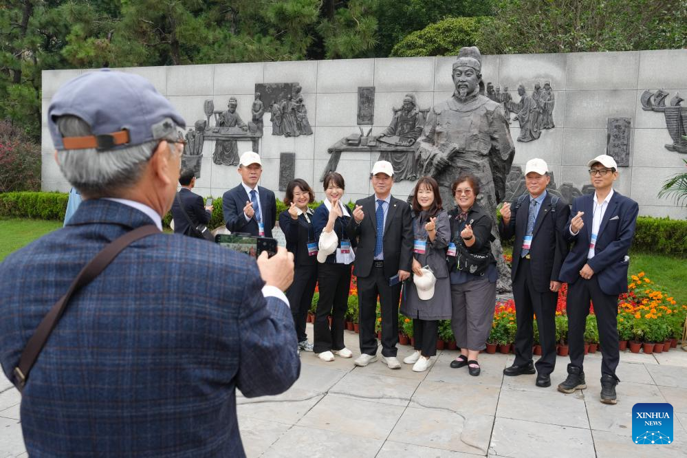 A delegation from South Korea visits Memorial Hall of Choe Chi-won in Yangzhou, east China's Jiangsu Province, Oct. 15, 2025.