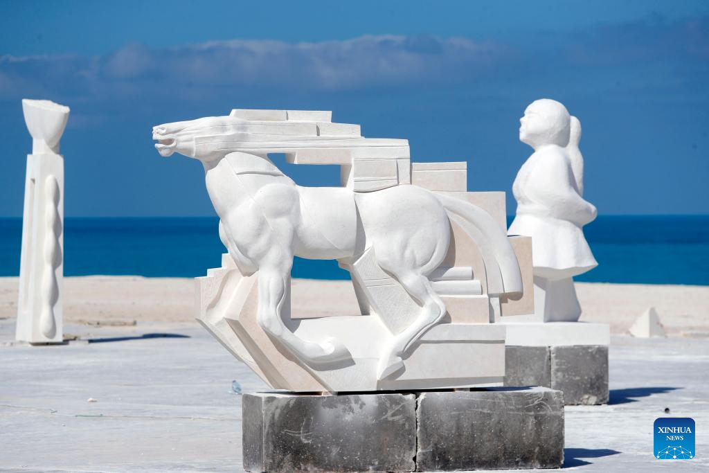 NEW ALAMEIN, Egypt, Oct. 28 (Xinhua) -- Under the Mediterranean sky, rows of white sculptures rise along the seaside promenade of New Alamein, an emerging city. Abstract forms and graceful human figures stand in silent dialogue with the sea, turning the esplanade into an open-air gallery that speaks to New Alamein's modern identity.
