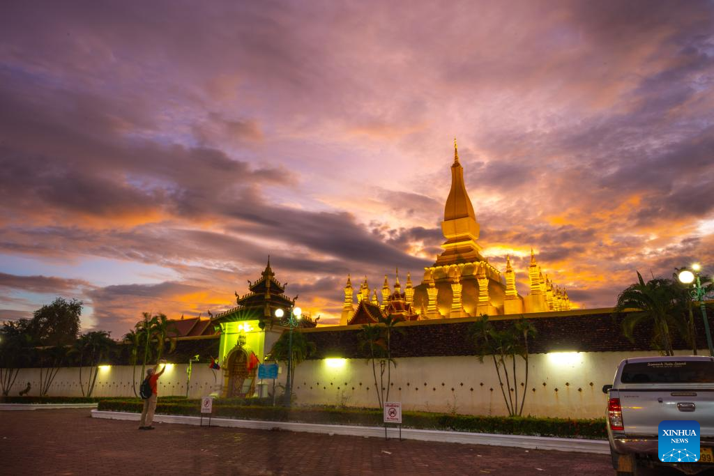 VIENTIANE, Oct. 29 (Xinhua) -- The streets of the Lao capital Vientiane were buzzing with colorful booths, and the city was awakening in full swing to embrace the golden glow of the beloved That Luang festival.