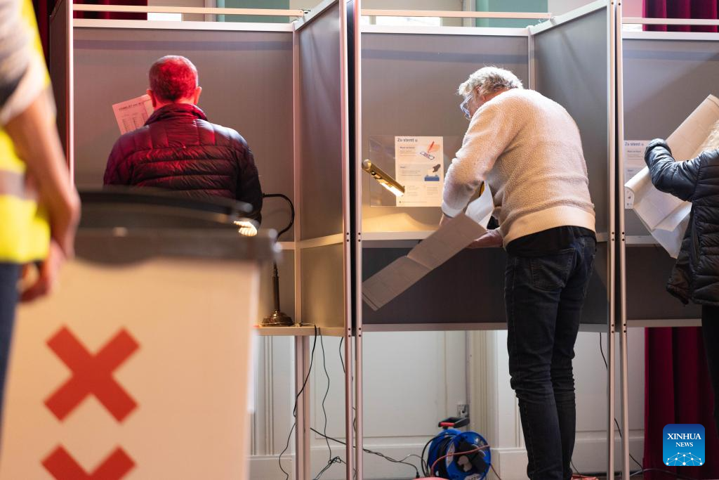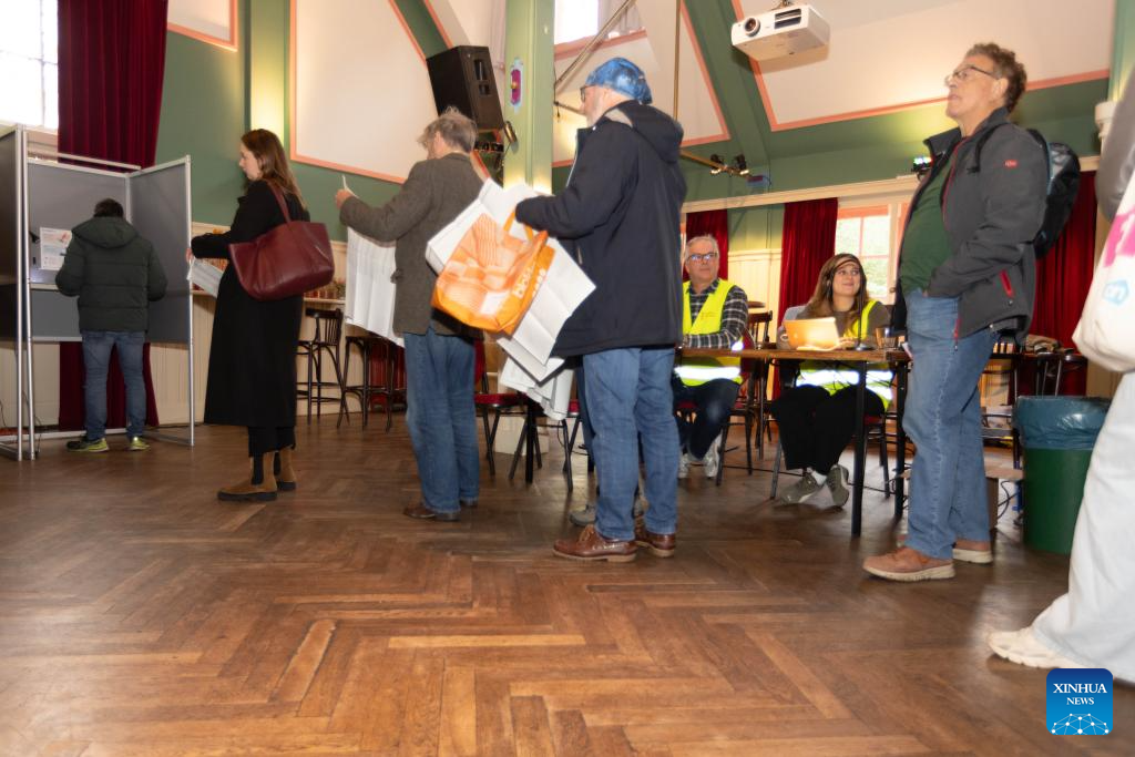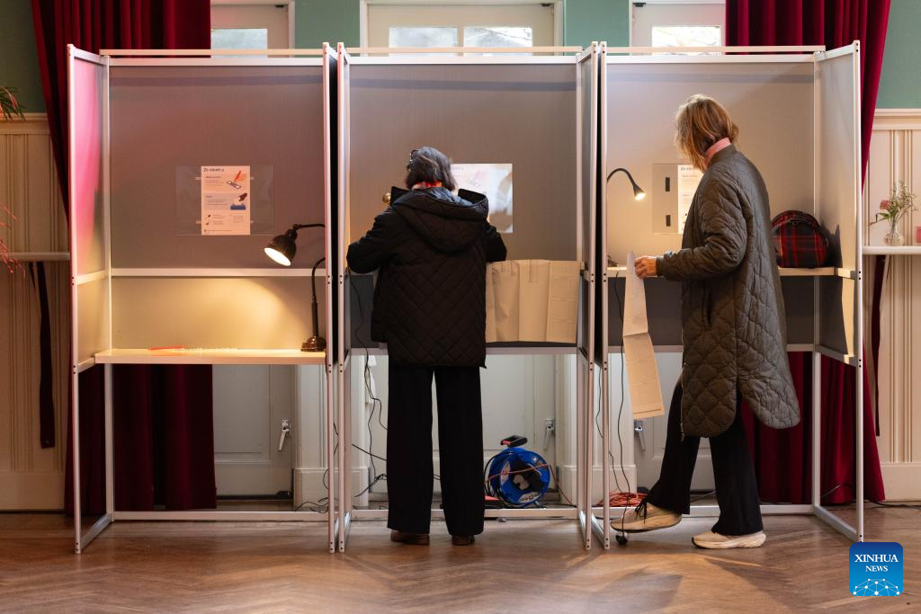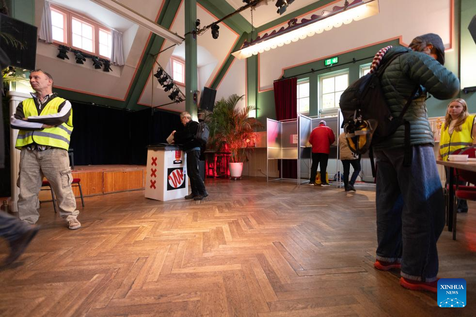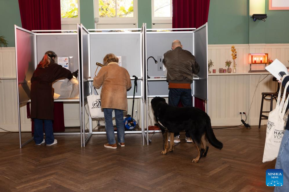 People cast their ballots at a polling station in Amsterdam, the Netherlands, Oct. 29, 2025. Voting for the Dutch parliament's lower house began on Wednesday, as 1,166 candidates from 27 parties compete for 150 seats after the collapse of the ruling coalition.