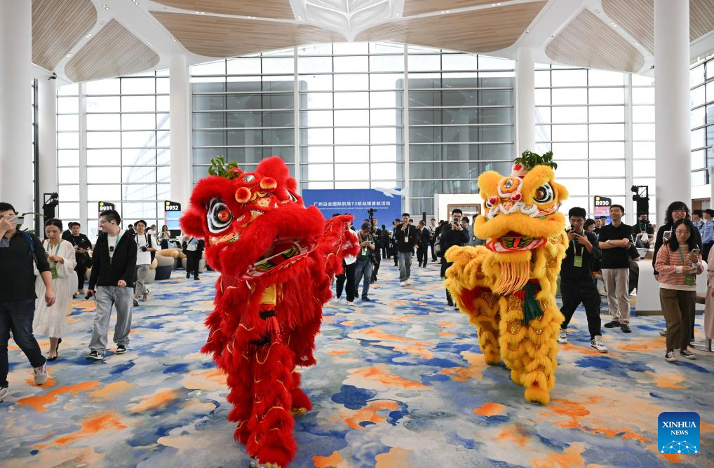 An art performance is staged at the inauguration ceremony of Guangzhou Baiyun International Airport Terminal 3 in Guangzhou, south China's Guangdong Province, Oct. 30, 2025. The Baiyun airport in Guangzhou, capital of south China's Guangdong Province, on Thursday officially put into operation its Terminal 3 and fifth runway, making it China's first civil airport to operate five commercial runways.