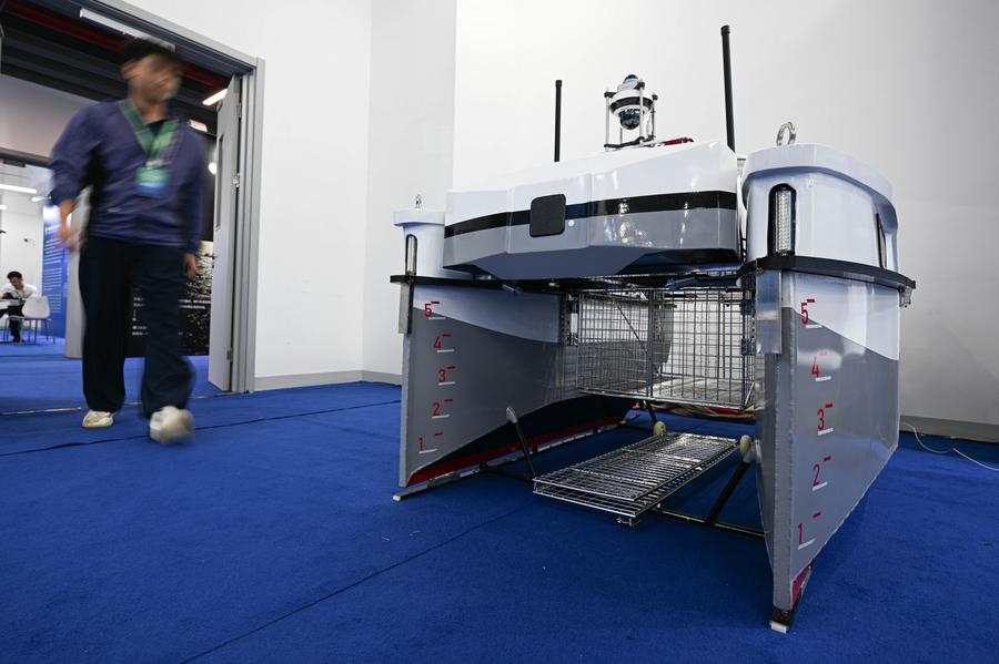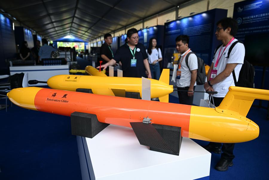 People visit the Deep-Sea Advanced Technology & Equipment Achievement Exhibition in Sanya, south China's Hainan Province, Oct. 29, 2025. (Xinhua/Pu Xiaoxu)An exhibitor introduces a product to visitors at the Deep-Sea Advanced Technology & Equipment Achievement Exhibition in Sanya, south China's Hainan Province, Oct. 29, 2025. (Xinhua/Pu Xiaoxu)This photo taken on Oct. 29, 2025 shows a smart unmanned cruising device for cleaning surface ocean waters at the Deep-Sea Advanced Technology & Equipment Achievement Exhibition in Sanya, south China's Hainan Province. (Xinhua/Pu Xiaoxu)This photo taken on Oct. 29, 2025 shows models of underwater gliders at the Deep-Sea Advanced Technology & Equipment Achievement Exhibition in Sanya, south China's Hainan Province. (Xinhua/Pu Xiaoxu)■