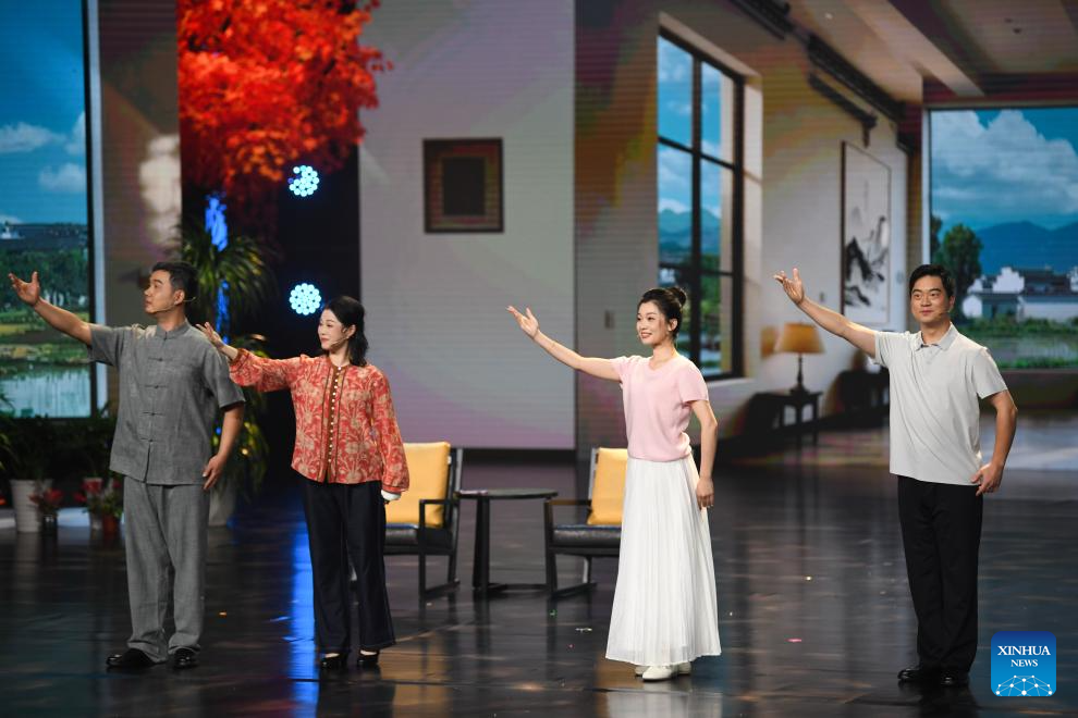 A performance on social etiquette and civility in rural areas is staged in Yan'an, northwest China's Shaanxi Province, Oct. 29, 2025. The event held in Yan'an staged cultural and artistic performances selected from across the country, showcasing new trends in social etiquette and civility in rural areas. (Xinhua/Zhang Bowen)