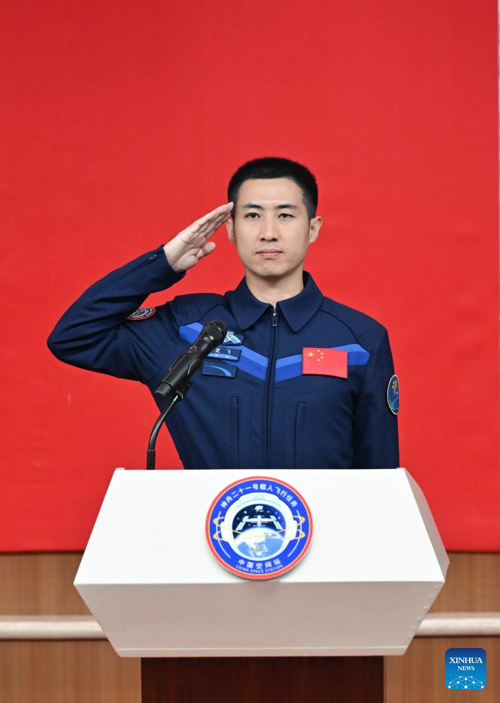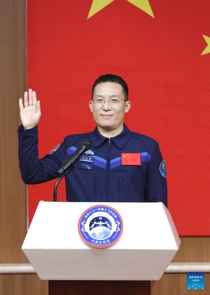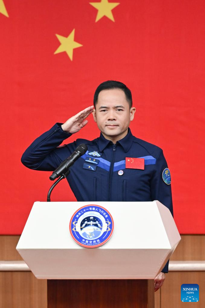 JIUQUAN, Oct. 30 (Xinhua) -- Chinese astronauts Zhang Lu, Wu Fei and Zhang Hongzhang for the upcoming Shenzhou-21 spaceflight mission, met the press on Thursday.
