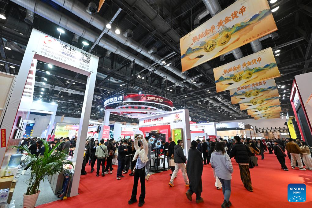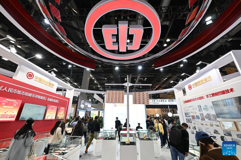 People visit the booth of China Banknote Printing and Minting during the Beijing International Coin Exposition 2025 at the China National Convention Center in Beijing, capital of China, Oct. 31, 2025. The three-day exposition kicked off here on Friday, attracting 323 exhibitors from 21 countries and regions. (Xinhua/Li Xin)